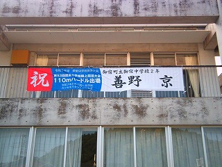 本日、横断幕が届きました。2年生教室前にかかげました。